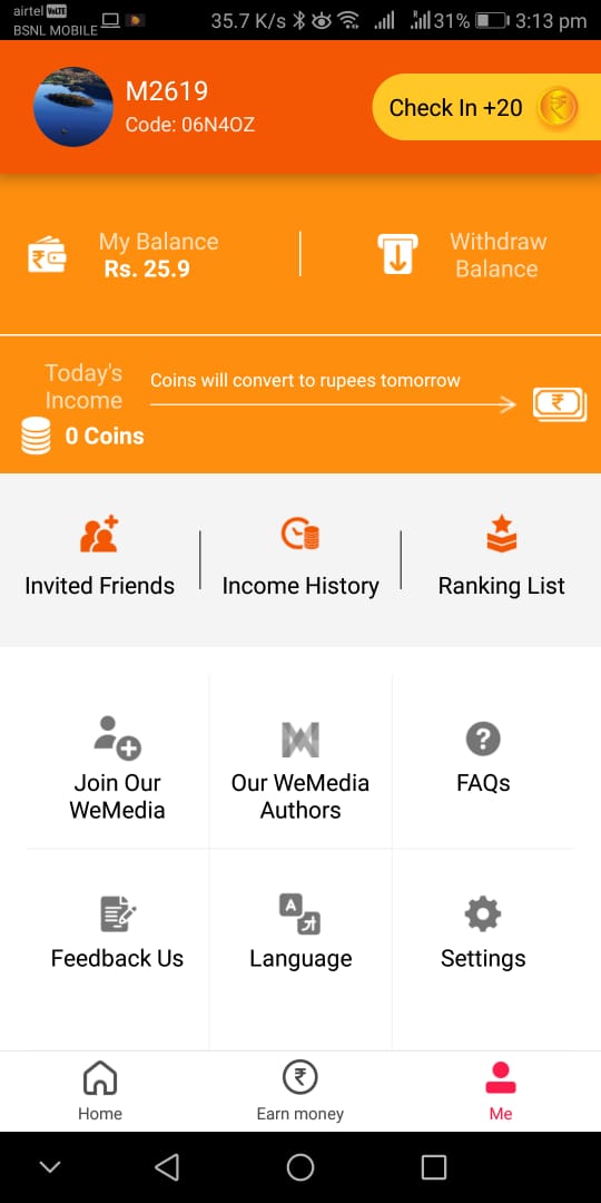 Stage 3: Tap the Earn money Option and there we get the choice to Earn More .