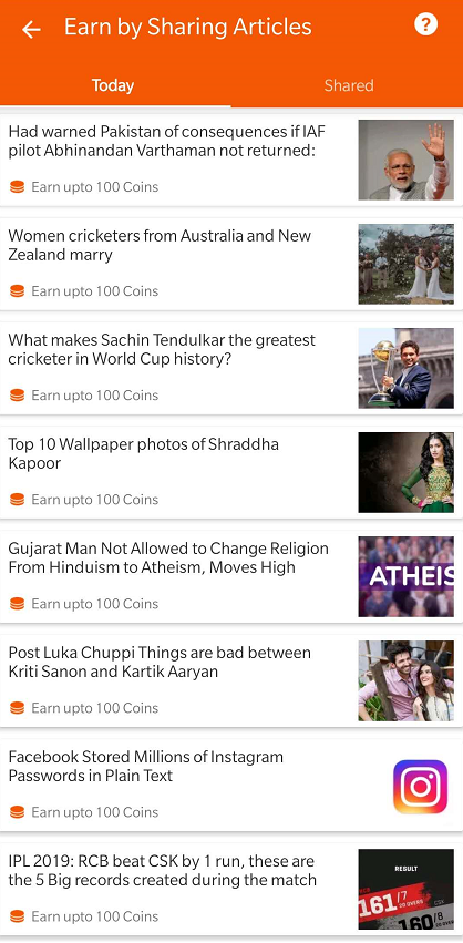 - Share Article &Earn Coins: there are lots of trending articles, read the one you like and share with friends , thenyou will get 20-100 coins for each share, no limit .