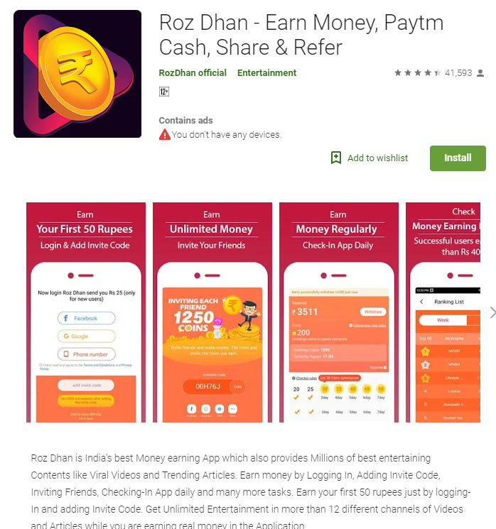 RozDhan App is anything but an essential salary hotspot for us and we can profit as long as possible. For the present moment, you can gain as much as you can for recharging phone and online shopping. Provide your contemplations about what you think about it.